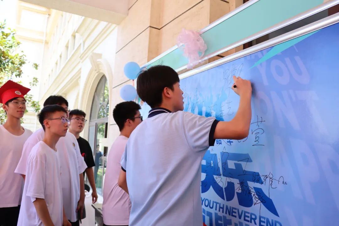 签字墙上,深泉学子郑重写下姓名,既是初中生活的最后留念,也是人生新篇的起笔。随后,师生与家长携手跨过 “成功门”,击掌声中满是对未来的期许。